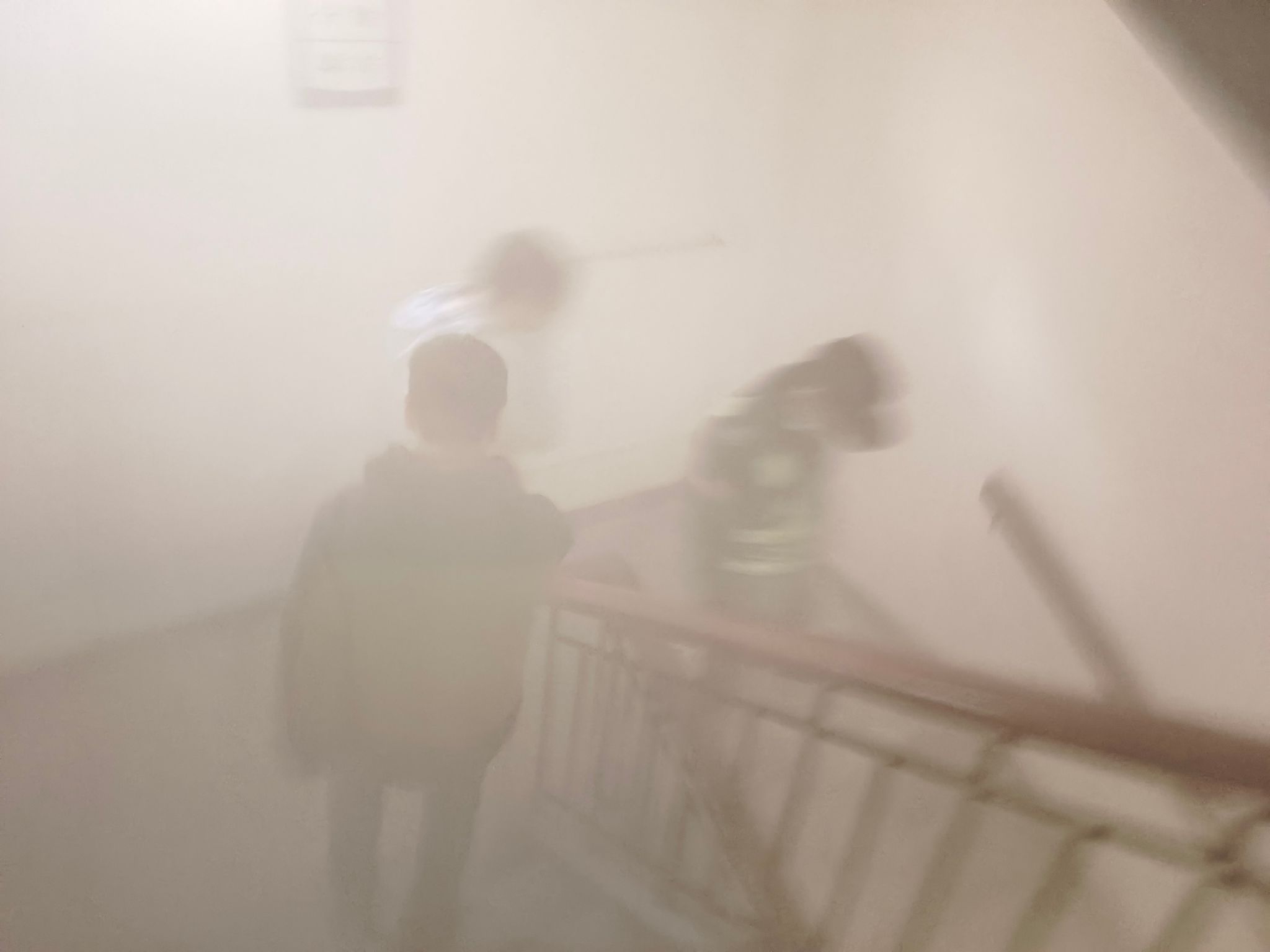 演练第一阶段模拟了真实火情下的应急疏散。保卫处在教学楼一楼释放了无毒无害的模拟烟雾,烟雾迅速沿楼梯间向上蔓延,很快,灰色烟雾弥漫于各楼层通道,现场能见度降低,蜂鸣警报器持续鸣响,营造出逼真的火险环境。警报响起后,全院师生反应迅速,立即中断手头工作,严格按照应急疏散预案,在视线受阻的情况下,依然保持冷静,行动有条不紊,沿着安全通道快速撤离。整个疏散过程高效、顺畅,仅用时不到4分钟,所有师生均已安全转移至教学楼前指定集结区域,顺利完成疏散工作。一位参与演练的研究生说:“虽然知道是演练,但当烟雾弥漫、看不清前路时,内心依然紧张。这种‘实战’体验,比任何口头说教都更让人深刻理解保持冷静和熟悉逃生路线的重要性。”