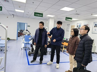 我院一行首先参观了天佑医院新近启用的脑机接口神经调控康复中心。该中心于2026年1月27日正式揭牌,整合神经内科、神经外科、康复医学科等多学科力量,是集临床治疗、技术研发、成果转化于一体的高水平平台。在康复训练区,众人现场观摩了患者佩戴头戴式采集设备开展脑电信号采集与康复训练的全过程。许立桥书记介绍,该中心已构建覆盖上下肢康复、吞咽训练等领域的临床路径,在运动意图解码技术上形成特色优势,吸引多家兄弟医院及相关领导前来参观交流。