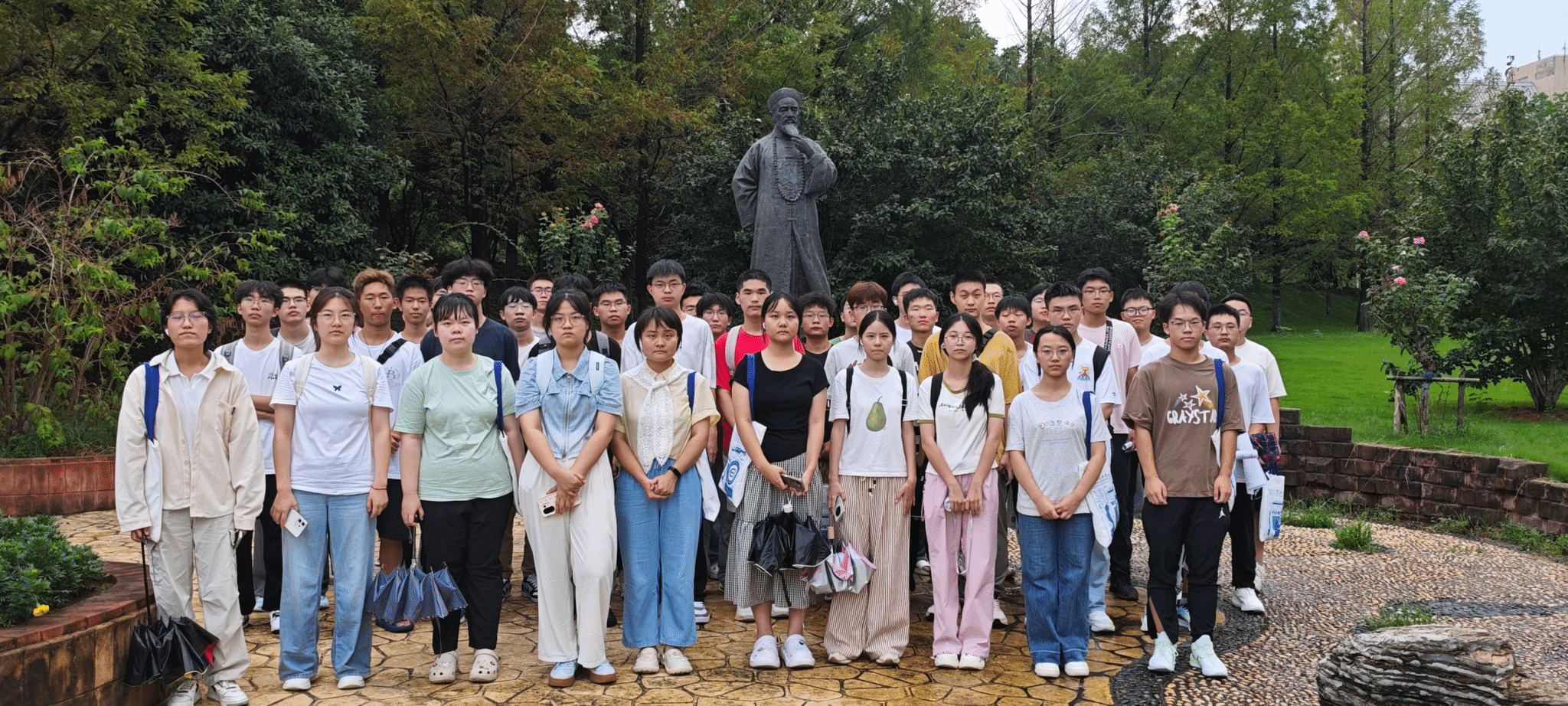 首站,同学们驻足于张之洞雕像前。在班助的介绍下,新生们了解到学校的办学历史可追溯至1898年,由时任湖广总督张之洞奏请清政府批准成立的工艺学堂。从“工艺学堂”到“湖北中等工业学堂”,再到“中南钢铁工业学校”,一段段历史的沿革,展现了学校百余年来始终与国家工业发展同呼吸、共命运的壮阔历程,奠定了学校深厚的历史根基。