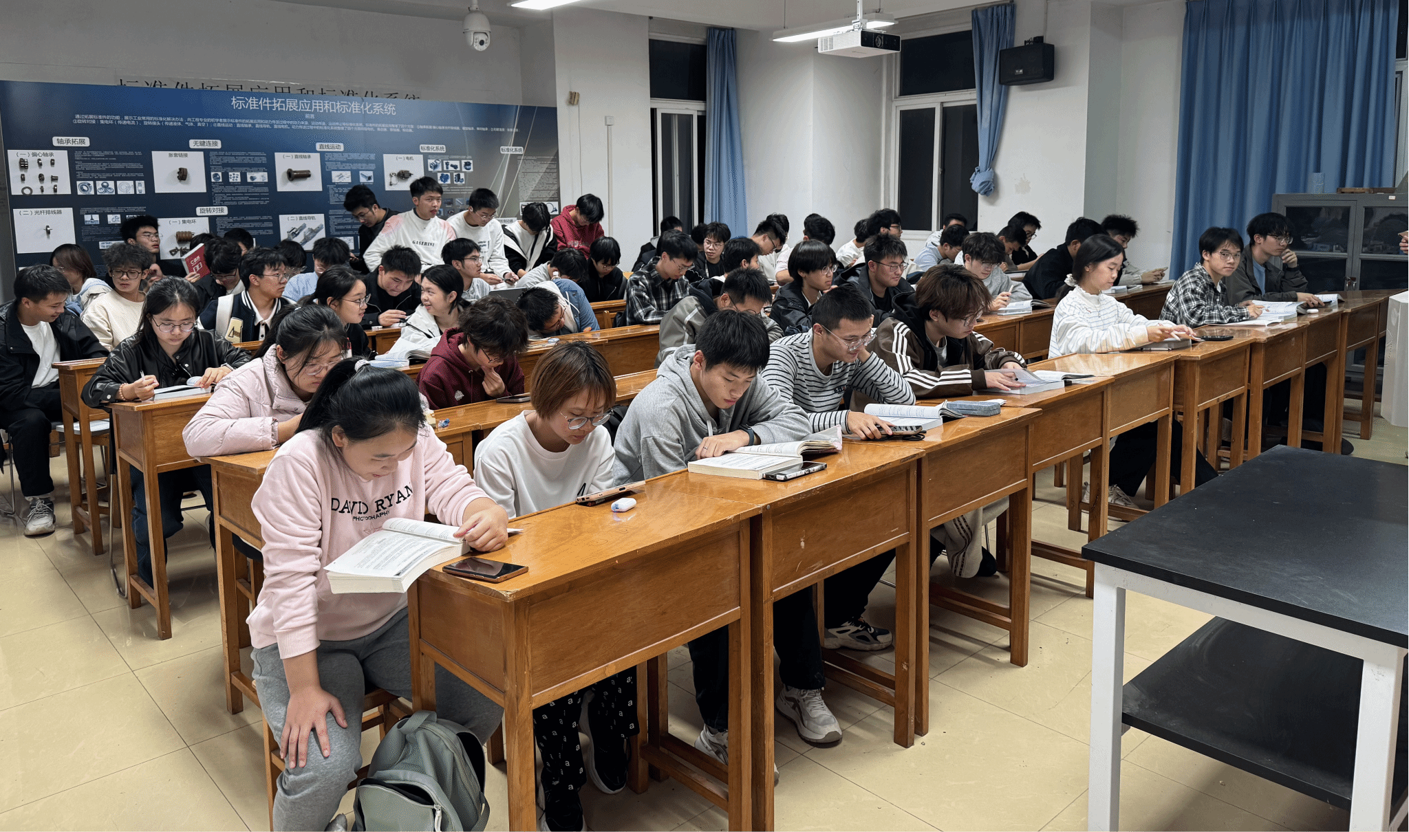 当晚的答疑活动主要围绕《C语言程序设计》课程展开。作为2025级新生的第一门专业基础“硬课”,C语言的学习遇到了不少难点。距离活动开始还有一段时间,12305教室内已座无虚席,许多同学更是早早带着电脑和笔记本前来“占座”,学习热情高涨。